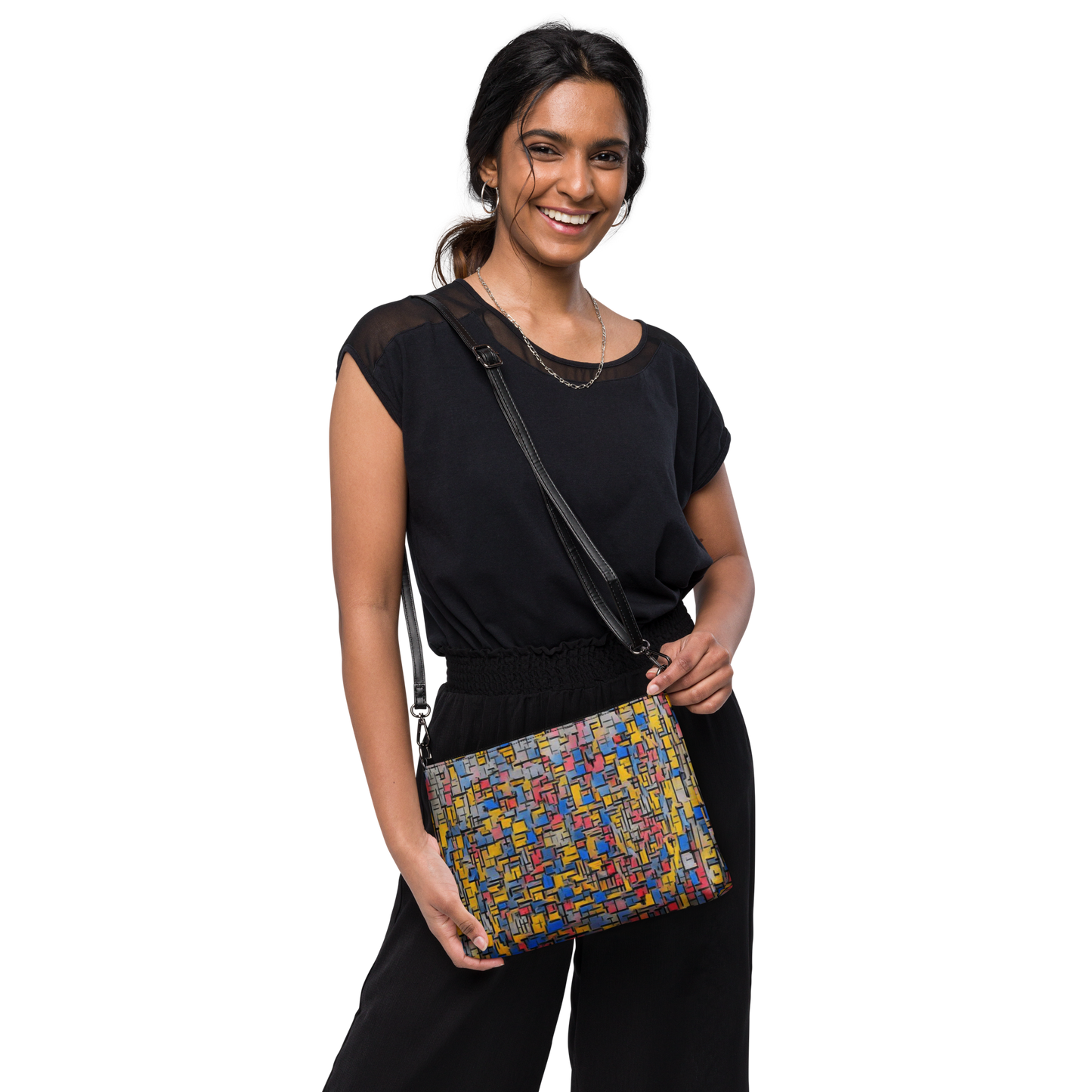 Keep your style on point and your hands free with our versatile crossbody bag. It’s made of premium faux leather and features dark gray hardware. Thanks to the zip-top closure and multiple inside pockets, you can keep your essentials secure and organized. Transform this crossbody bag with removable wrist and shoulder straps to style it for day-to-night looks.