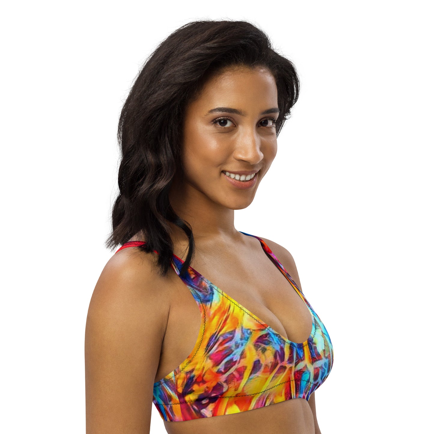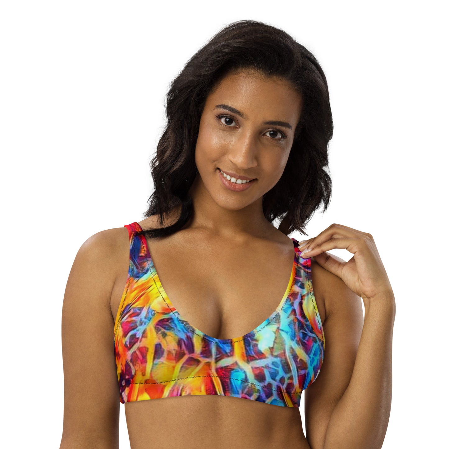 Get this Recycled padded bikini top for your summer adventures! It’s comfortable and includes pads you can remove. To make this top even more versatile, mix and match it with different bikini bottoms for a trendy look.